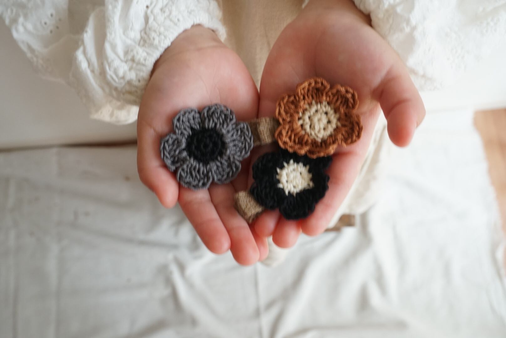 手編み お花のピン ・レース網ピン パッチンピン ・お花のピン ワニクリップピン 長さ どちらも5cm 程